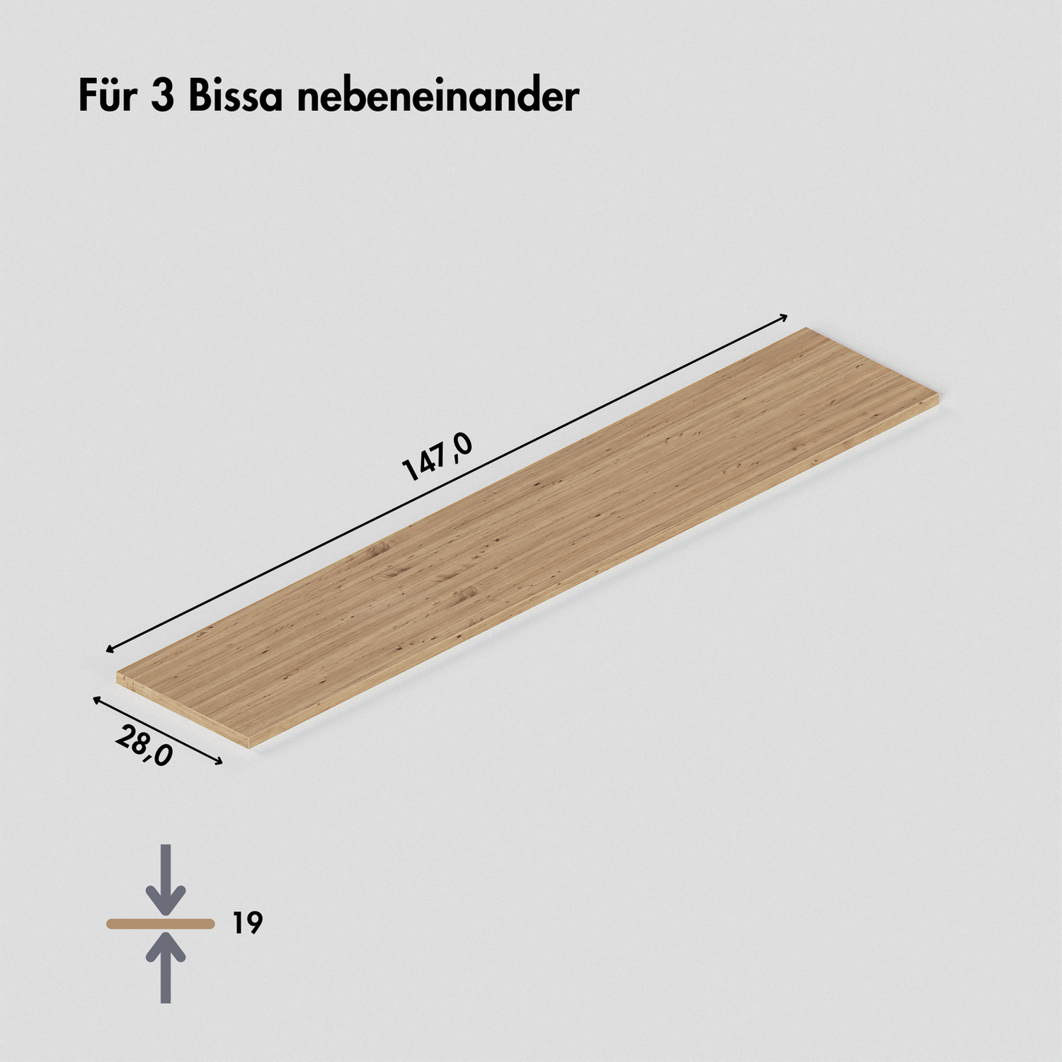 Holzplatte für 3 IKEA Bissa Schuhschränke nebeneinander, 147,0 x 28,0 cm – Eiche, Abdeckplatte für Schuhregal
