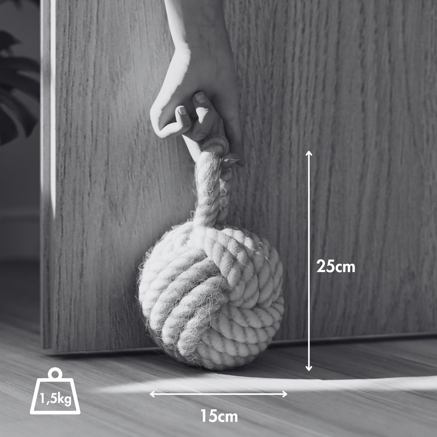 Der aus Tauwerk gefertigte Stopper sieht nicht nur toll aus, sondern schützt auch Türen vor einem ungewollten Zuschlagen. Das Gewicht von 1,5kg sorgt für einen festen Stand. Der Jute-Stoff schützt die Böden und Türen vor unschönen Kratzern.