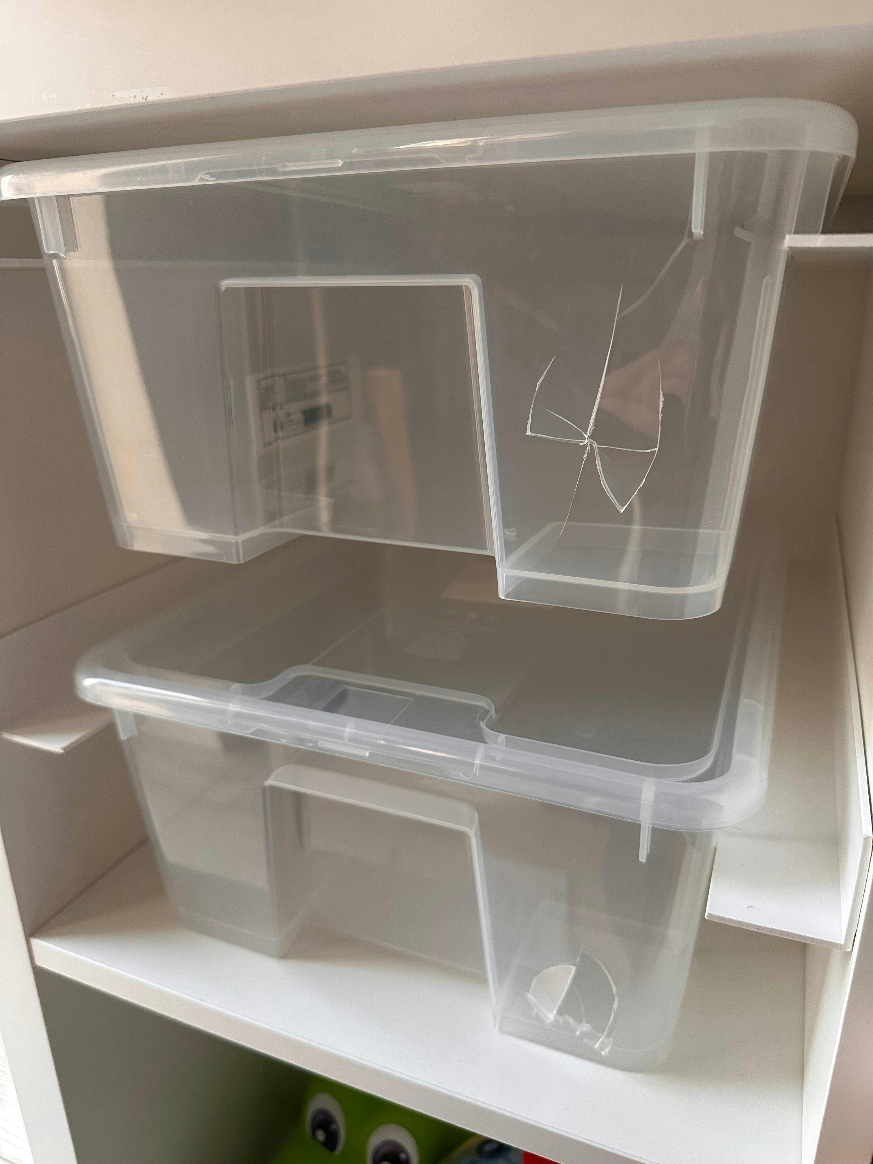 IKEA Kallax Einsatz für Samla Boxen, Schienensystem für transparente Kisten Clutter Cover