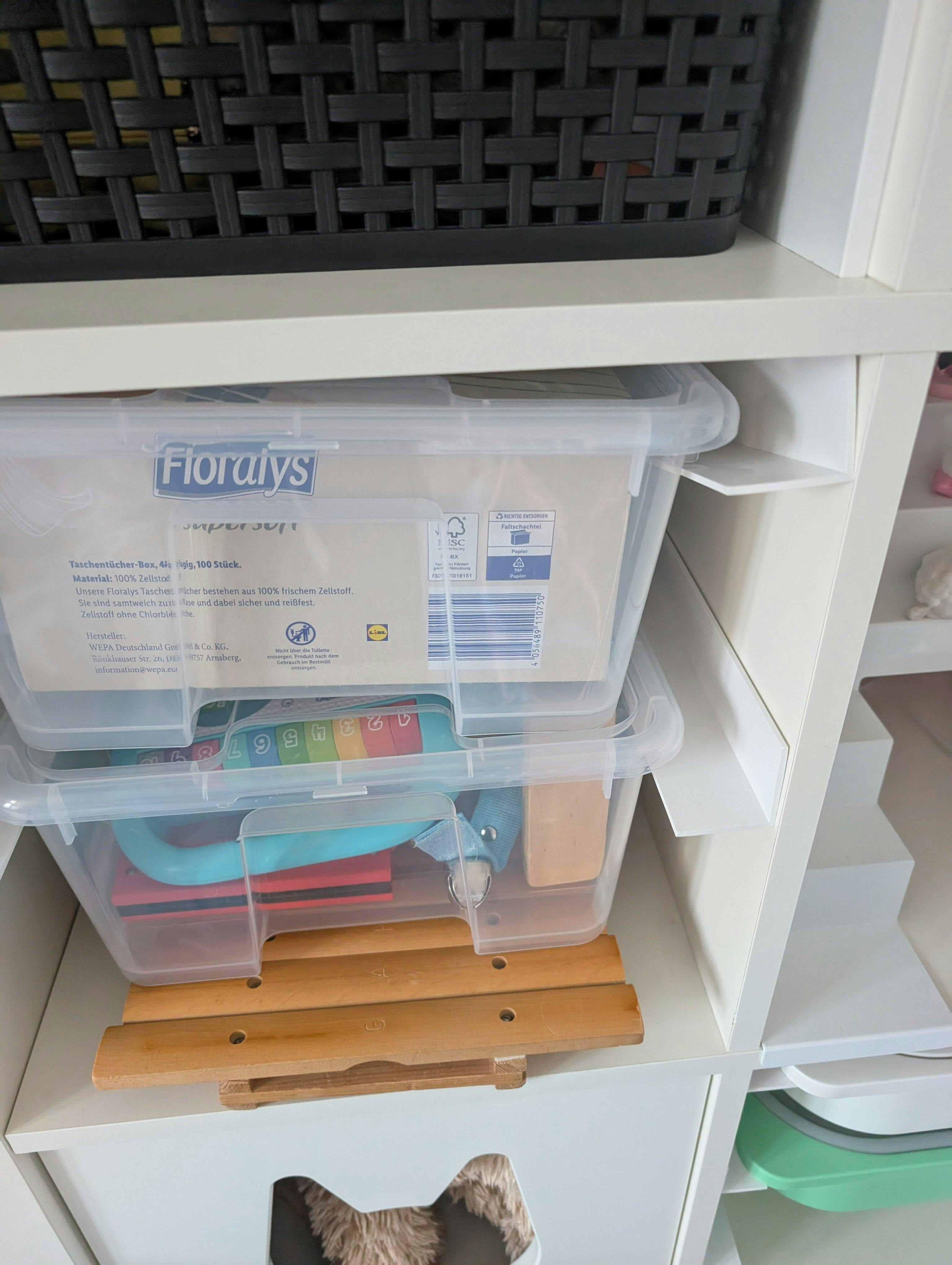 IKEA Kallax Einsatz für Samla Boxen, Schienensystem für transparente Kisten