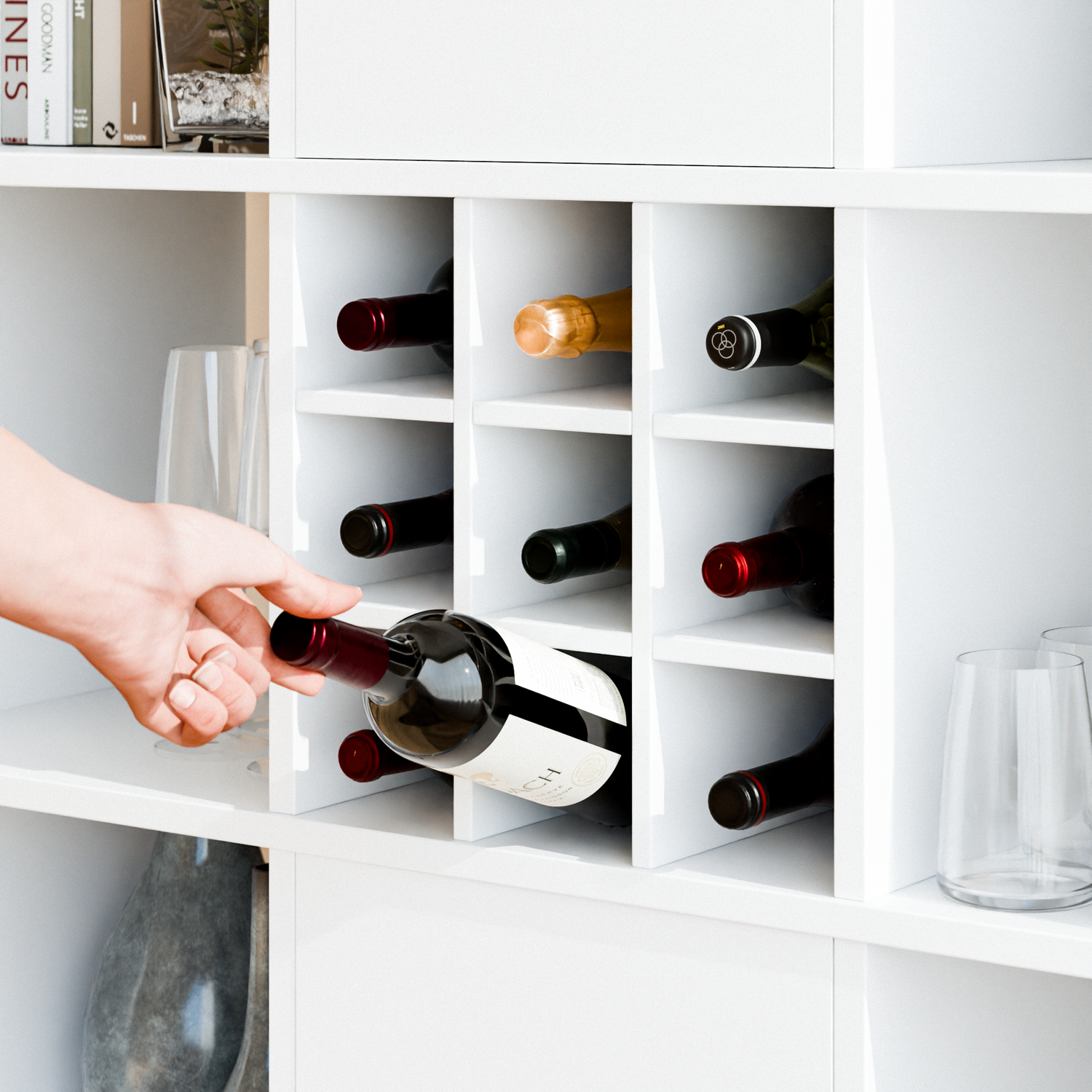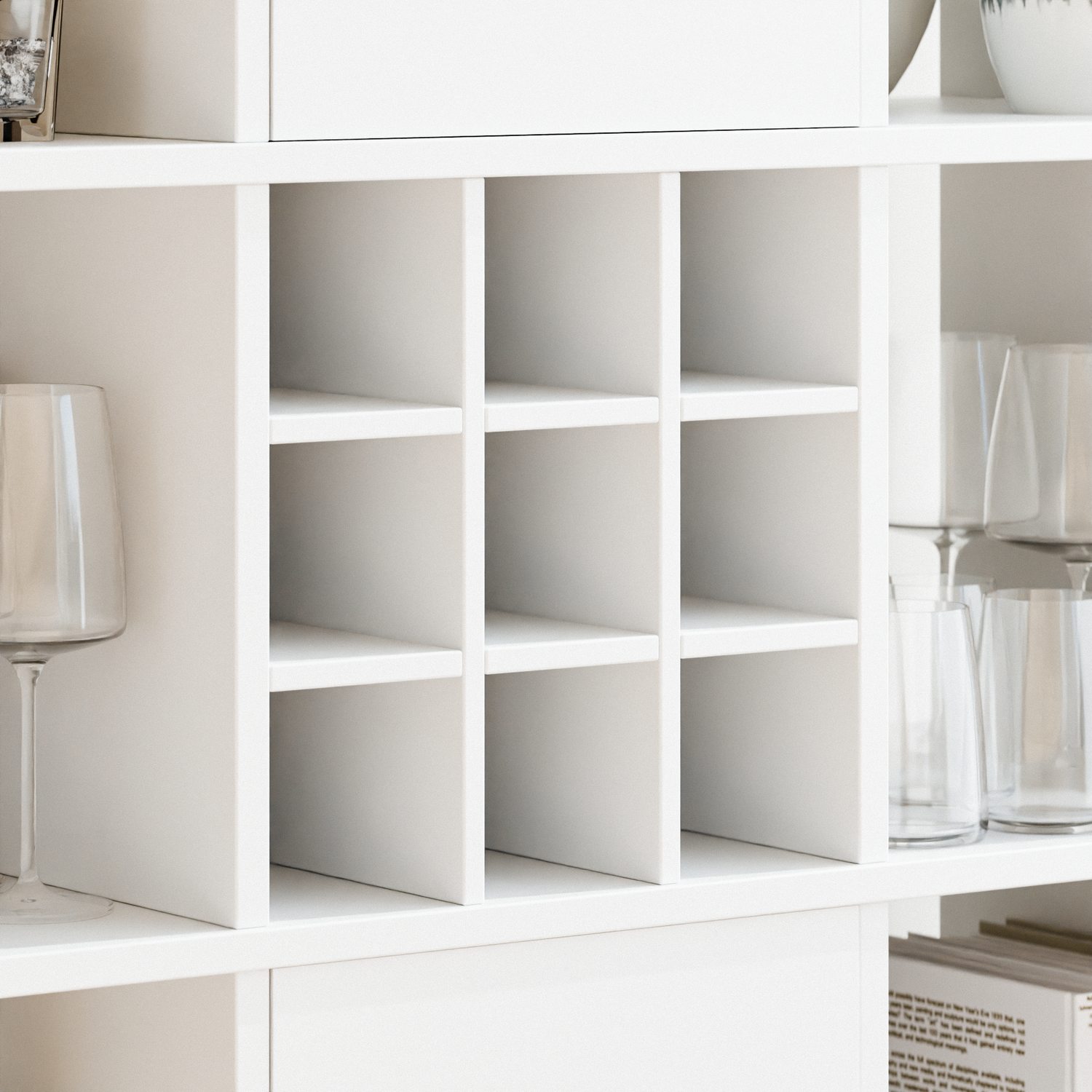 Unser Flascheneinsatz für das KALLAX Regal bringt mehr Struktur und Platz in deine Aufbewahrung. Mit 9 gleichgroßen Fächern ist er ideal für die ordnungsgemäße Aufbewahrung von Weinflaschen oder als praktischer Stauraum für Handtücher, Pflegeprodukte und vieles mehr.