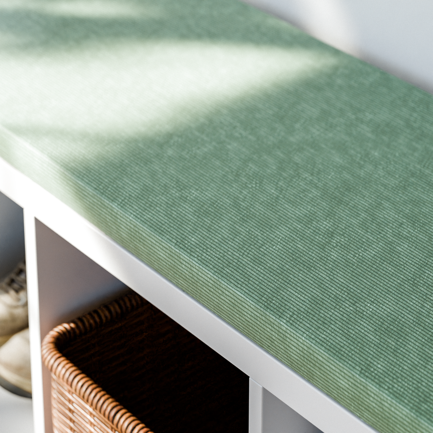 Mit der Kallax Sitzauflage aus grünem Cord machst du aus deinem Regal eine stilvolle Sitzbank. So verbindest du cleveren Stauraum mit einer gemütlichen Sitzgelegenheit. Ob im Flur als praktische Schuhbank, im Wohnzimmer als natürlicher Farbtupfer oder als kuschelige Leseecke im Kinderzimmer.