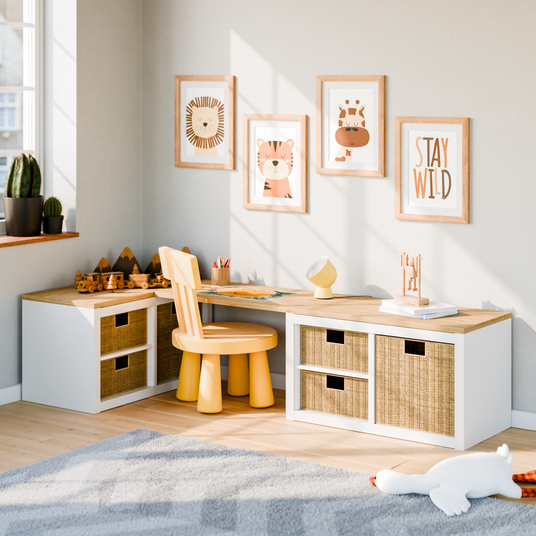 Du liebst dein Kallax Regal, suchst aber nach einer cleveren Lösung, um den Raum noch besser zu nutzen? Dann ist dieses praktische 2er Set Seegras-Körbe genau das Richtige für dich. Ihre halbe Höhe ist perfekt für Kallax Regale mit Zwischenboden und verwandelt jedes Fach in einen intelligent organisierten Stauraum. So schaffst du Ordnung und gewinnst zusätzlichen Platz für all deine Lieblingssachen.