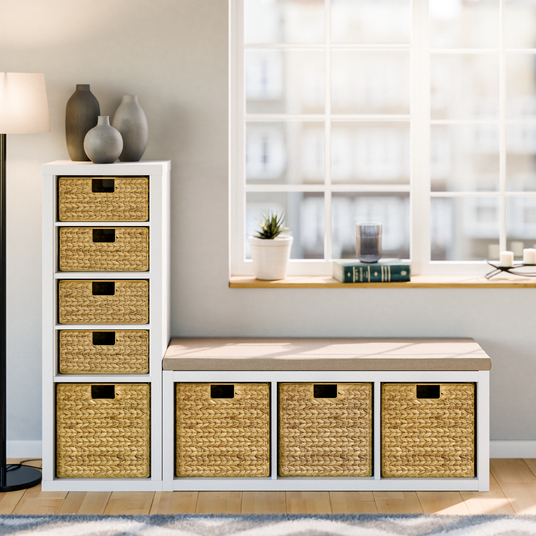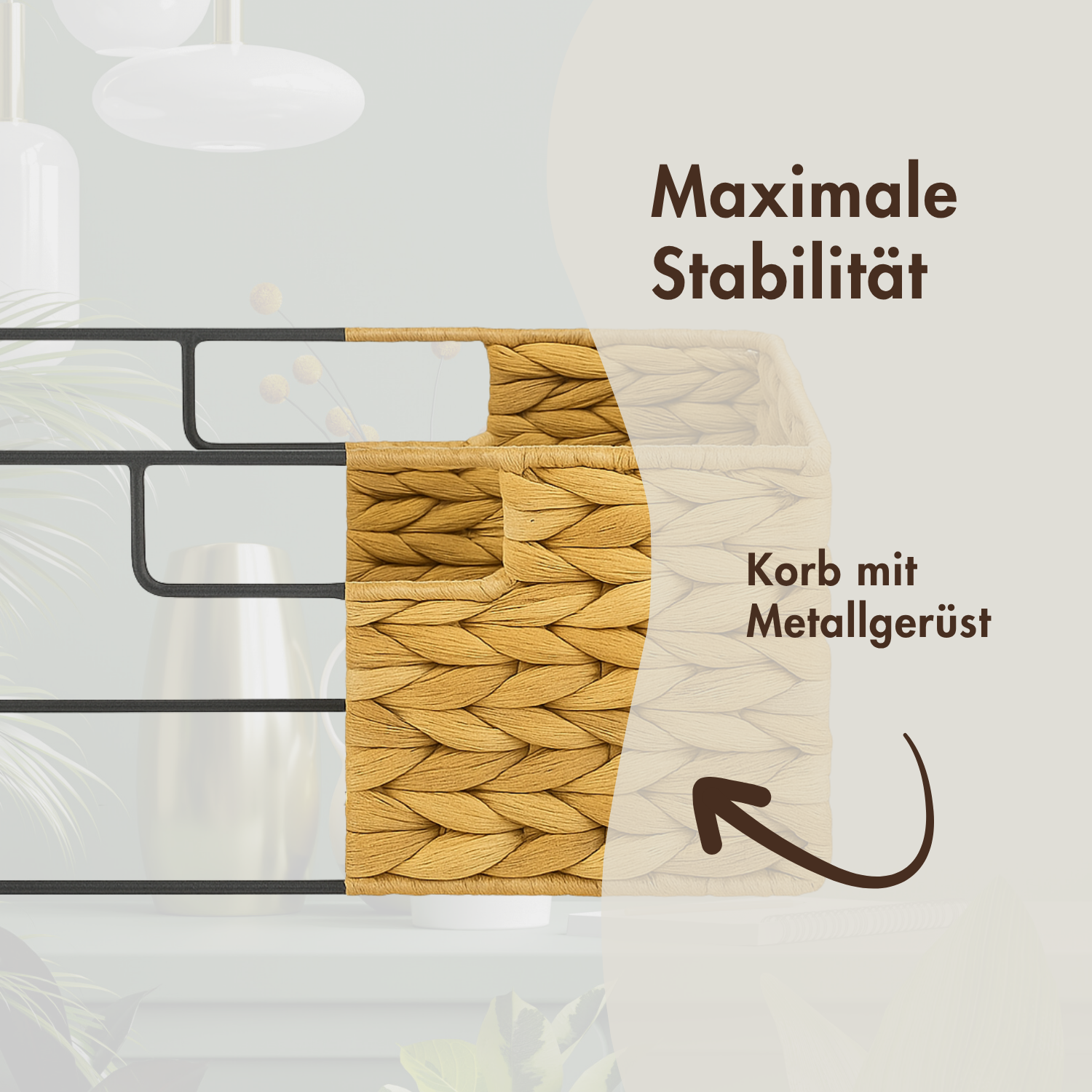Statement für natürliche Einrichtung. Das handgeflochtene Material und der warme Farbton der Wasserhyazinthe fügen sich harmonisch in jeden Einrichtungsstil ein. Sie verleihen deinem Zuhause eine gemütliche und einladende Atmosphäre, während sie gleichzeitig für Ordnung sorgen.