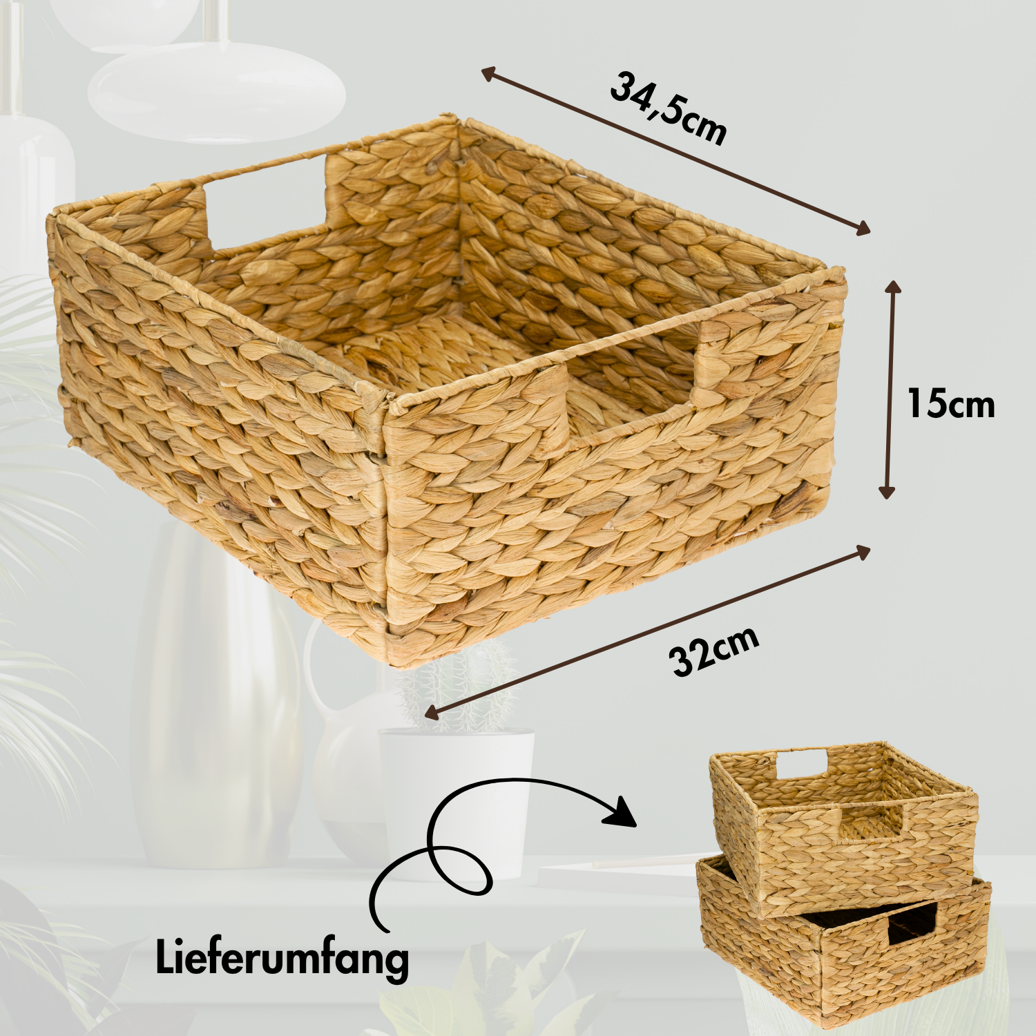 2er Set Korb aus Wasserhyazinthe 30 x 34 x 15cm für halbes Kallax Fach, Flechtkorb