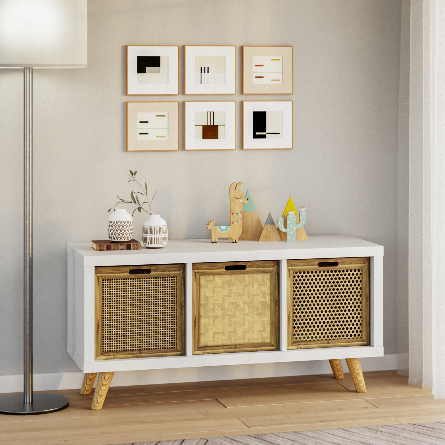 Kallax Rattan Korb mit Wiener Geflecht und Holzrahmen, 32 x 34 x 32cm