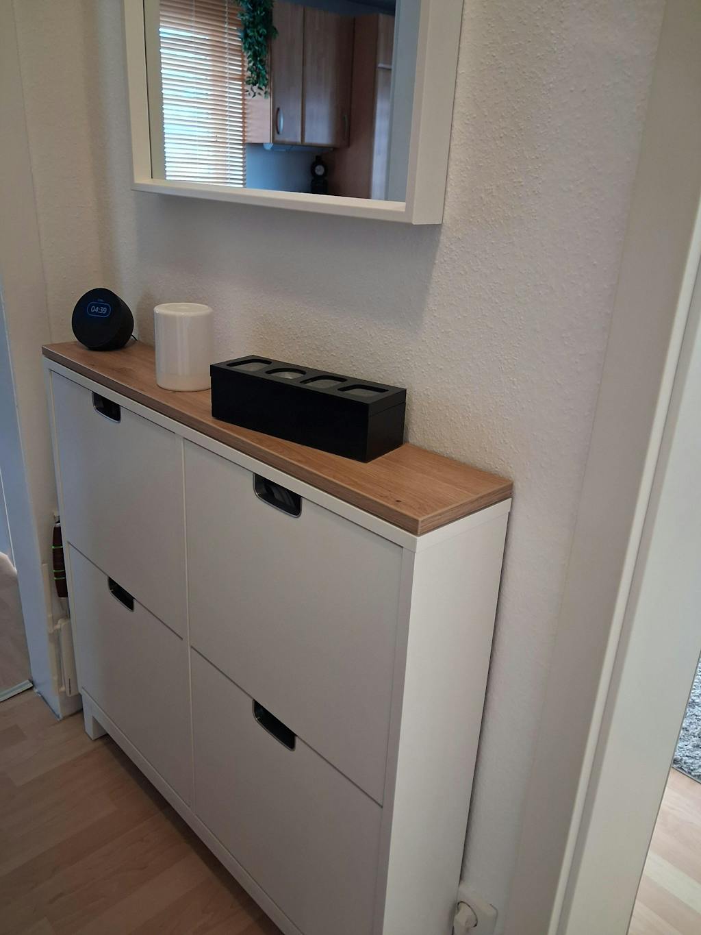 Die Montage geht schnell und einfach: Befestige die Platte einfach mit den beiliegenden Klebepunkten, und schon ist dein IKEA-Hack fertig. Die abgerundeten Kanten sorgen für eine angenehme Haptik und erhöhen die Sicherheit – perfekt für deinen Flur oder Eingangsbereich.