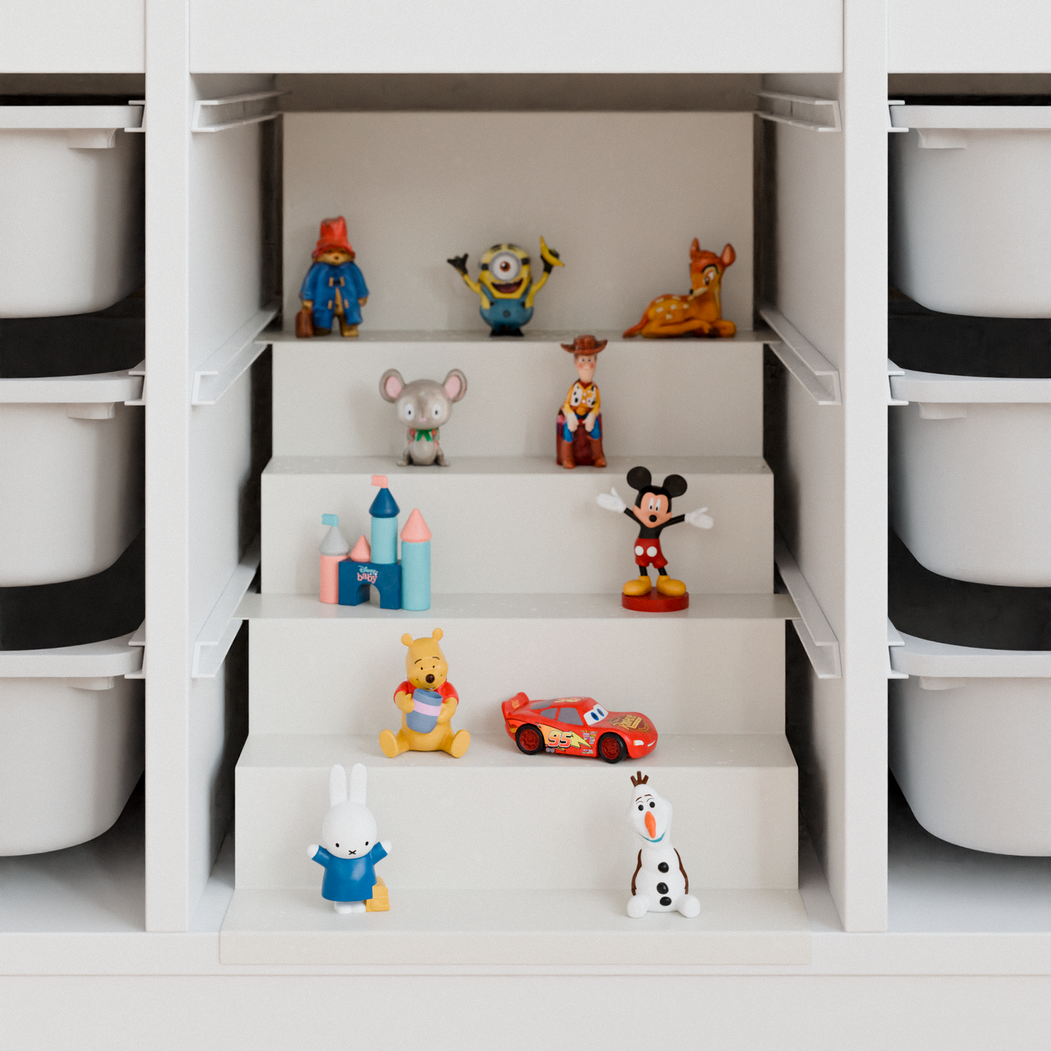Diese Tonie Treppe ist die perfekte Lösung, um deine Tonie Figuren und wahlweise auch die Tonie-Box übersichtlich und sicher aufzubewahren. Das magnetische, pulverbeschichtete Tonie-Regal ist speziell für IKEA Trofast Regale entwickelt und lässt sich ohne Werkzeug einfach einschieben. Die abgerundeten Ecken sorgen für Sicherheit im Kinderzimmer, während das schlichte Design sich nahtlos in deine Einrichtung einfügt. Mit Platz für bis zu 40 Figuren ist der Tonie Einsatz das ideale Zubehör für alle Tonie-Fans!