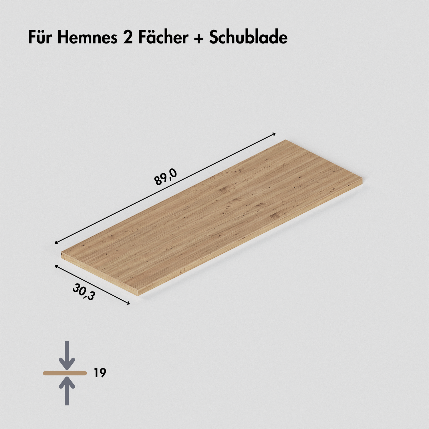 • für Hemnes mit 2 Fächern und 1 Schublade: 89,0 x 30,3cm (Stärke 1,9cm)