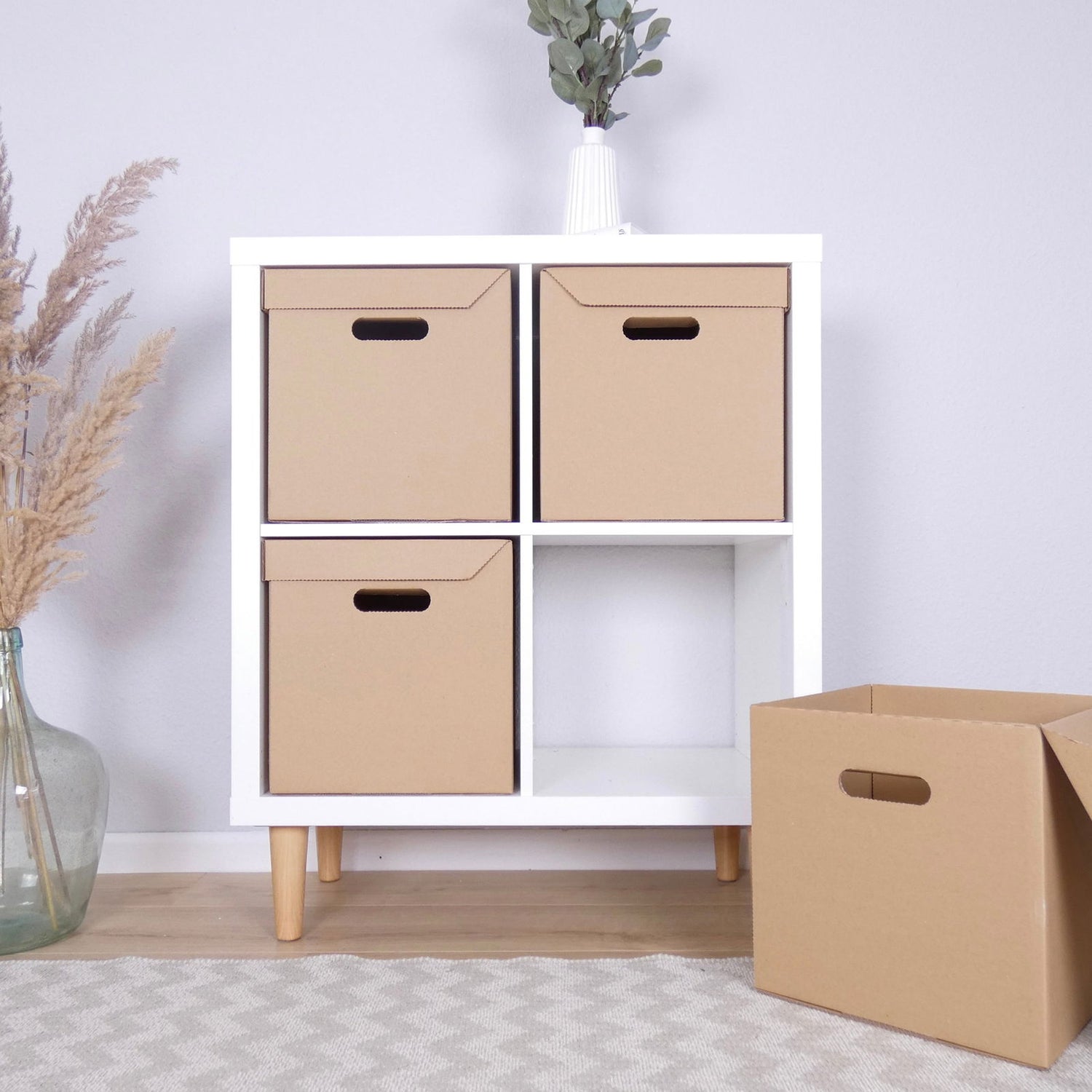 Die stabile Faltbox aus Pappe ermöglicht einen schnellen Zugriff auf all deine kleinen und großen Schätze. Mit dem integrierten Deckel wird der Inhalt der Kisten zusätzlich vor Staub geschützt.
