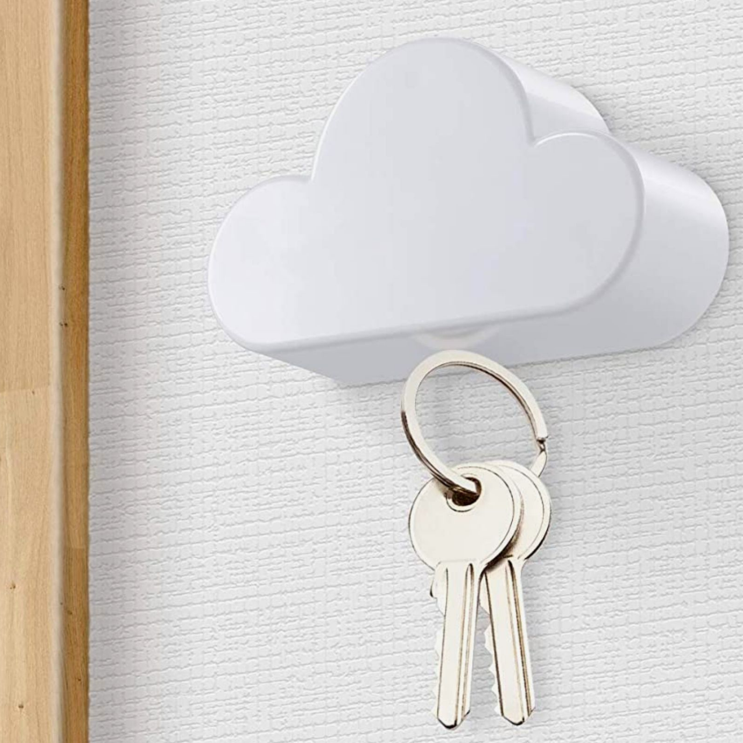 Mit der magnetischen Wolke hast du die Möglichkeit bis zu drei Schlüsselbunde schnell und einfach zu platzieren. Dabei sorgen die starken Magnete im inneren für festen Halt und erlauben sogar einen kleinen Wurf. Mit der Wolke auf Augenhöhe, wirst du in Zukunft keinen Schlüssel mehr suchen müssen. Die Montage ist einfach: Du kannst die Wolke an die Wand schrauben oder du nutzt das doppelseitig klebende Schaumband, um den Schlüsselhalter an der Wand zu platzieren.